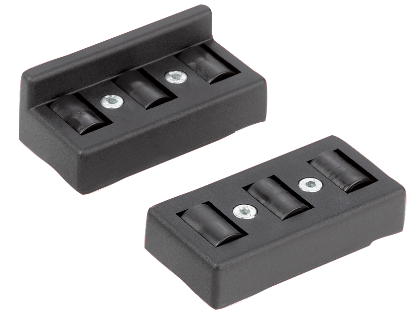 The roller elements are suitable for the manufacture of roller conveyors in any length and width. Suitable for type B and I aluminium profiles. Due to the sprung guide tabs on the bottom, the elements will fit any 8 and 10 slots.