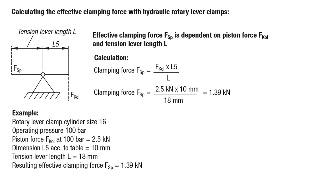 Large forces can be generated with the rotary lever clamps. It must be ensured that the workpieces and clamping fixtures are designed for these loads.