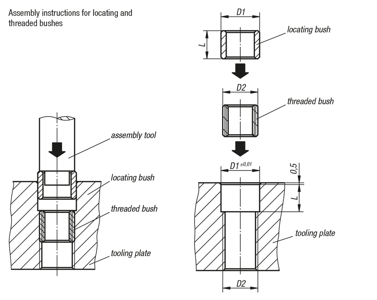 Assembly instructions for changing threaded bushing.