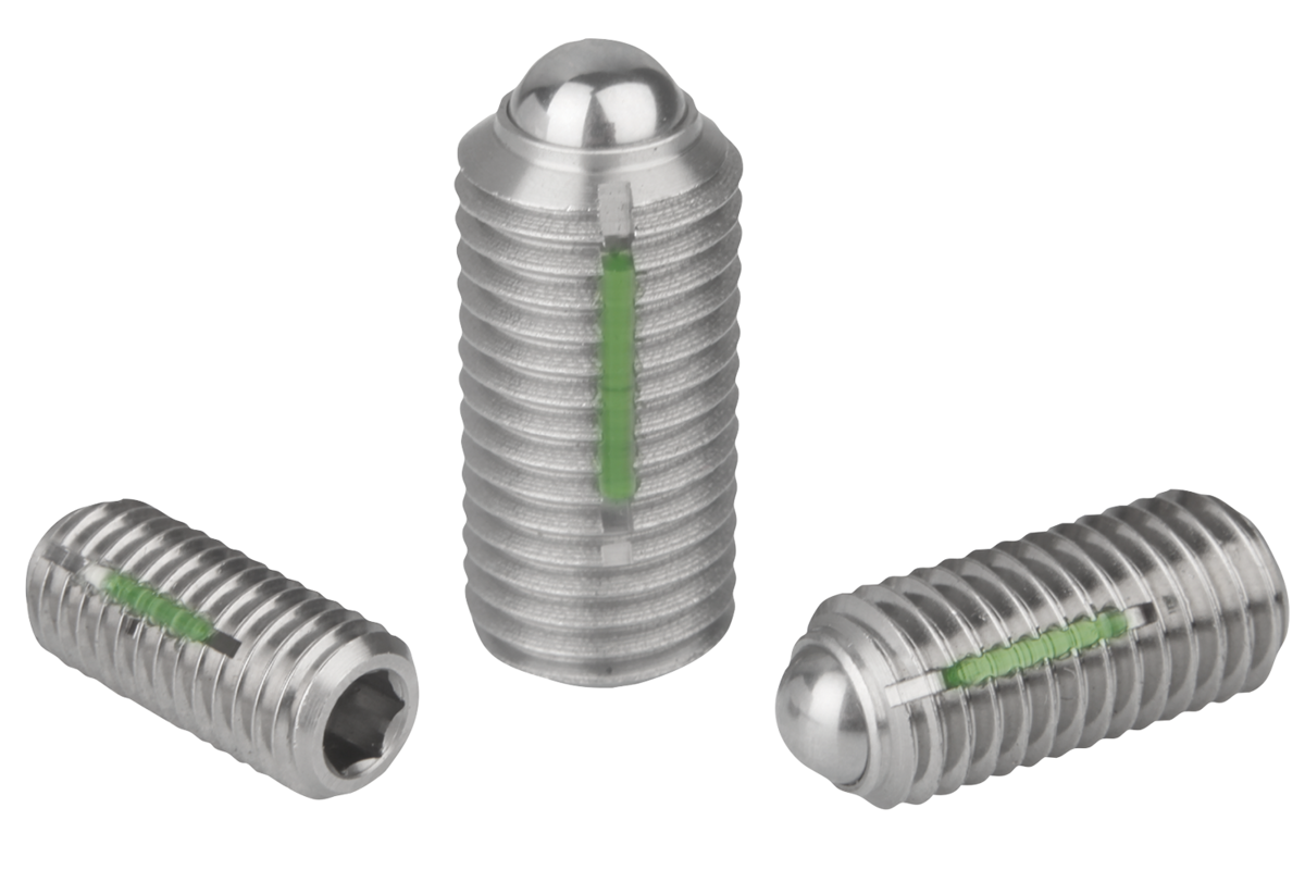 Spring plungers with hexagon socket and ball, stainless steel, standard spring force, with thread lock
