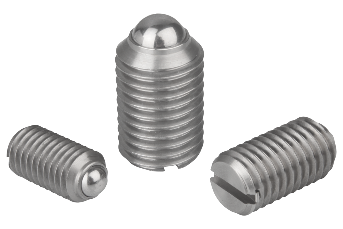 Spring plungers with slot and ball, stainless steel, long version, standard spring force