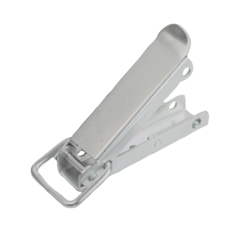 Latches with draw bail for securing and locking hatches, container lids, machine cladding etc. By exceeding the dead centre they resist vibration.