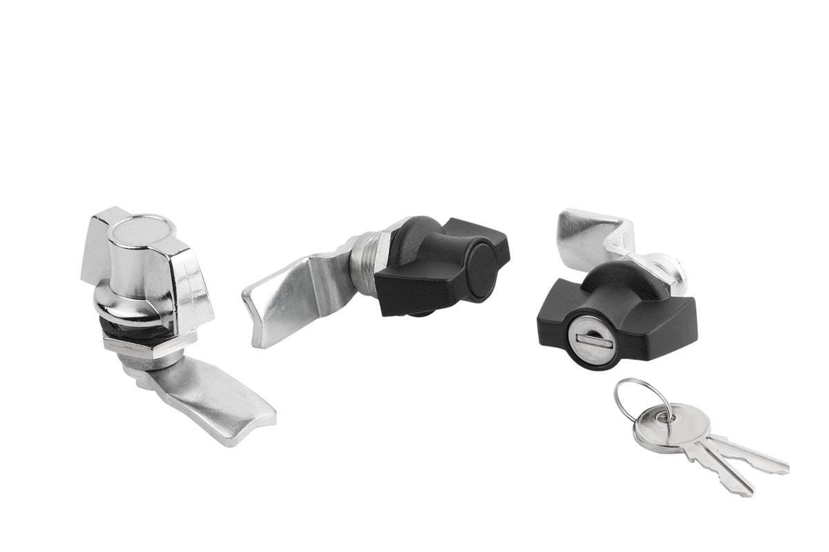 The lockable quarter-turn locks are each supplied with 2 keys. The key can be removed in both positions (open and closed). The locks are keyed alike, i.e. they can all be opened using the same key (lock type 101 or 1333).
