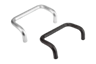 Ground, brushed and matt-chromed or black powder-coated with fine texture