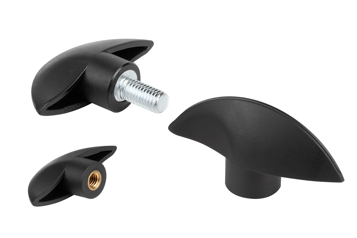 Wing grips, plastic, threaded insert brass or steel, with internal thread