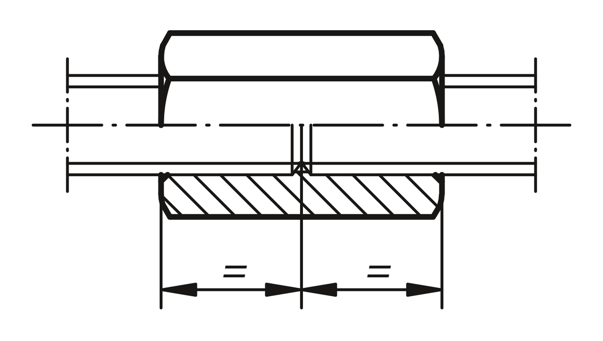 For functional and safety reasons screws should be screwed into a maximum of half the nut height from both sides. Minimum thread depth 1x diameter.