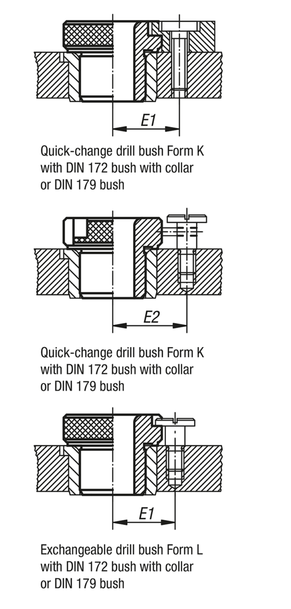 All slip bushings are inscribed on the collar upper surface with the hole dimension and tolerance, e.g. 15 F7.