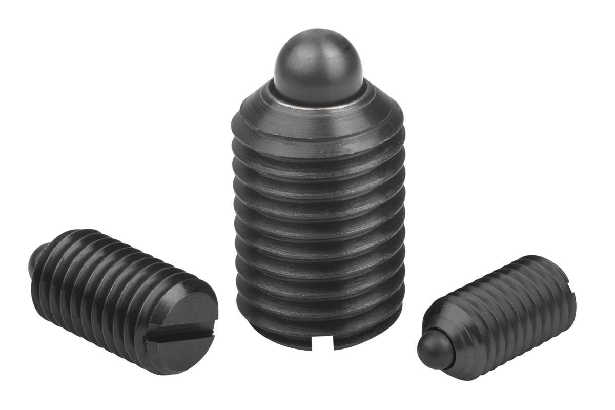Spring plungers with slot and thrust pin, steel, strong spring force