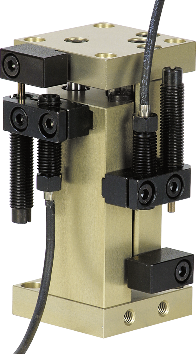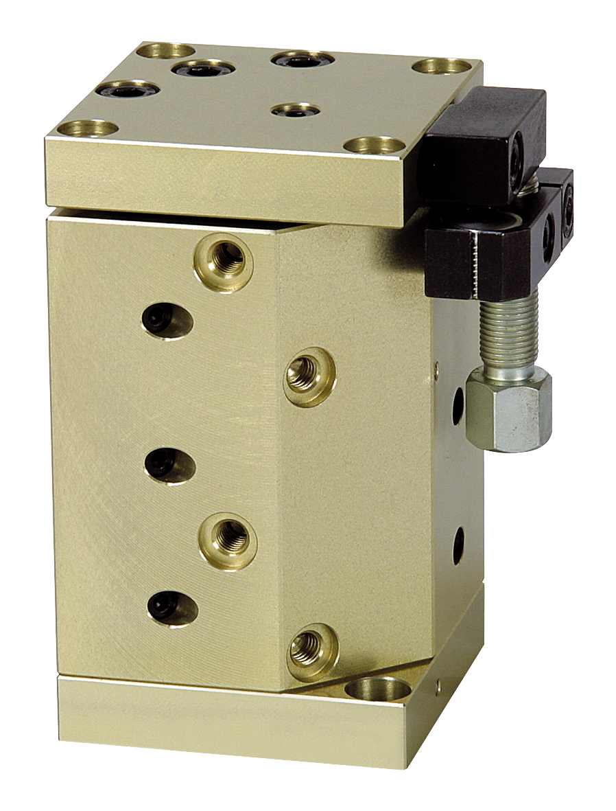 Unidades de elevación neumáticas sin mantenimiento de estructura compacta y con guía de rodillos en cruz. Activación mediante válvula de 4/2 ó 5/2 vías. El accionamiento se realiza a través de aire comprimido a 4-8 bar, constante, filtrado (10 µm), seco, lubricado o sin lubricar. Conexión de aire comprimido M5.