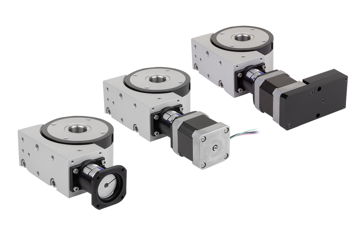 Mesas de posicionamiento redondas para tareas de ajuste y posicionamiento con motor. El reductor sinfín pretensado funciona casi sin juego. El rodamiento del árbol sinfín ofrece la máxima exactitud de circulación radial. Mediante el orificio de gran tamaño del eje hueco es posible el paso de cables. El anillo de posicionamiento ajustable permite fijar como se desee el punto de referencia de giro respecto a la posición del componente montado. Es posible el montaje de sensores de aproximación con el portasensor disponible de forma opcional (21094). Le ofrecemos como accesorio (85000-15) el software de programación correspondiente y el cable de interfaz para el motor paso a paso con control de posicionamiento.