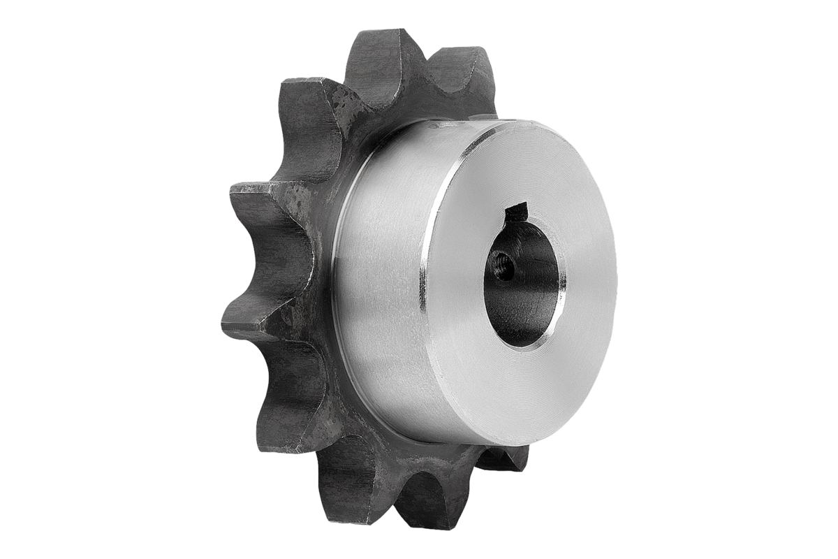 Piñones listos para montaje con cubo unilateral para cadenas de rodillos según DIN ISO 606. Los dientes están fresados y templados por inducción.