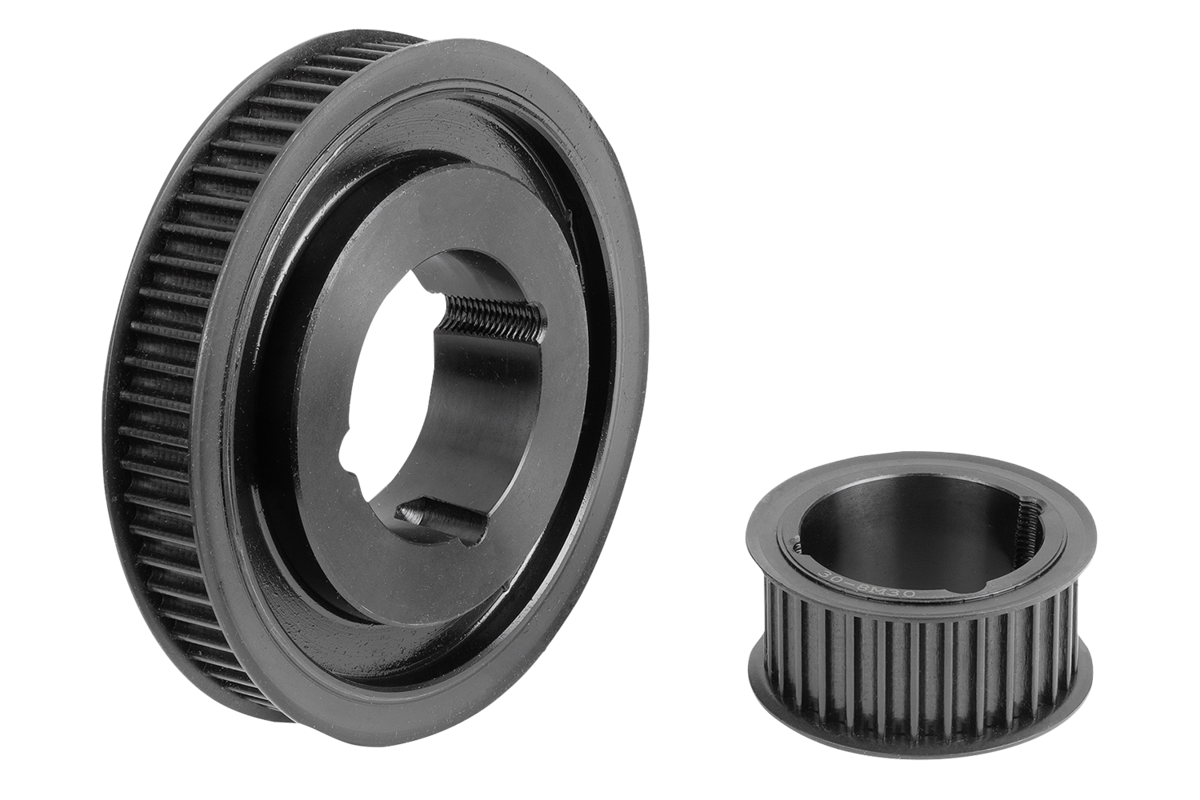 Perfil HTD estándar con división métrica (dentado semicircular). Por lo menos una polea de correas dentadas deberá tener una brida de guía. Perforación cónica para casquillos de sujeción Taper. Los casquillos de sujeción Taper se deben pedir por separado y están disponibles con distintos diámetros del árbol. Las poleas con perforaciones Taper tienen equilibrado estático según ISO 1940 nivel de calidad G16.