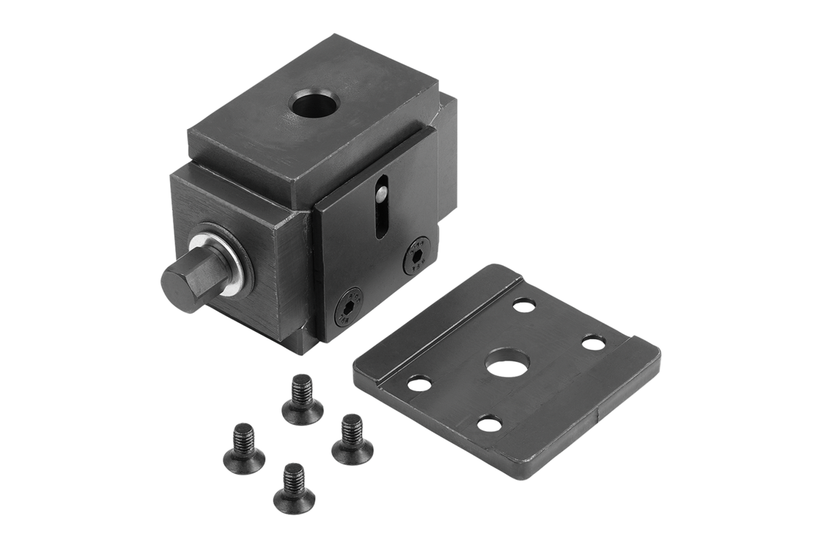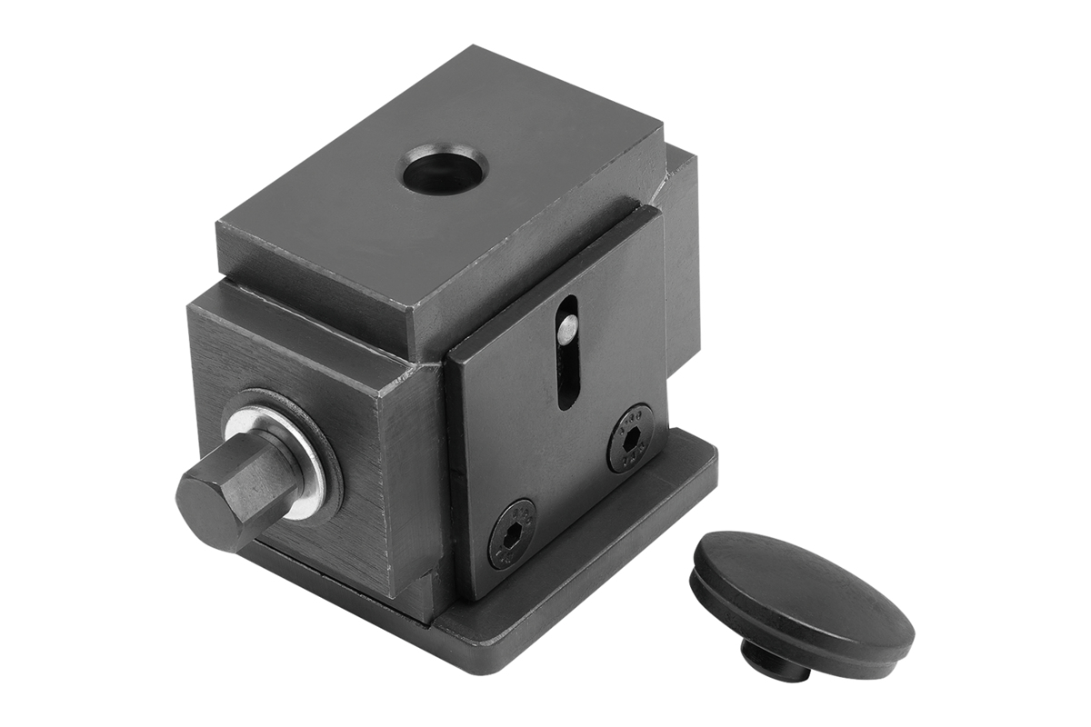 Regulación precisa mediante tornillo moleteado o llave con macho hexagonal. Esto permite el movimiento en vertical sin desplazamiento lateral. Especialmente adecuado para tratar o trabajar piezas pesadas. Con cada cuña se suministra una cabeza esférica 02210-01.