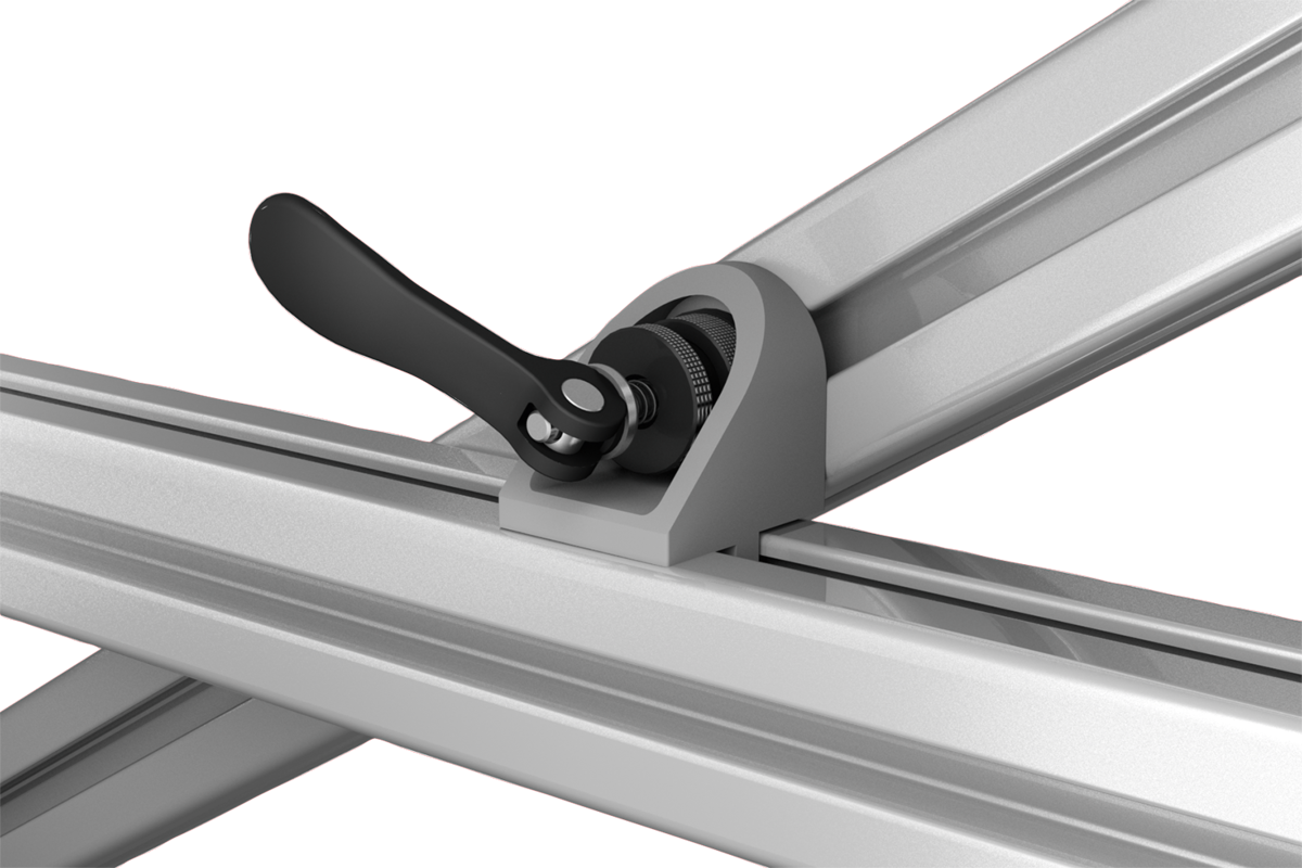 Al soltar el tornillo, ambas fijaciones quedan liberadas, lo cual permite un giro libre y un desplazamiento longitudinal de los perfiles. Las escuadras de fijación se utilizan por lo general en pares o en combinación con una escuadra articulada.