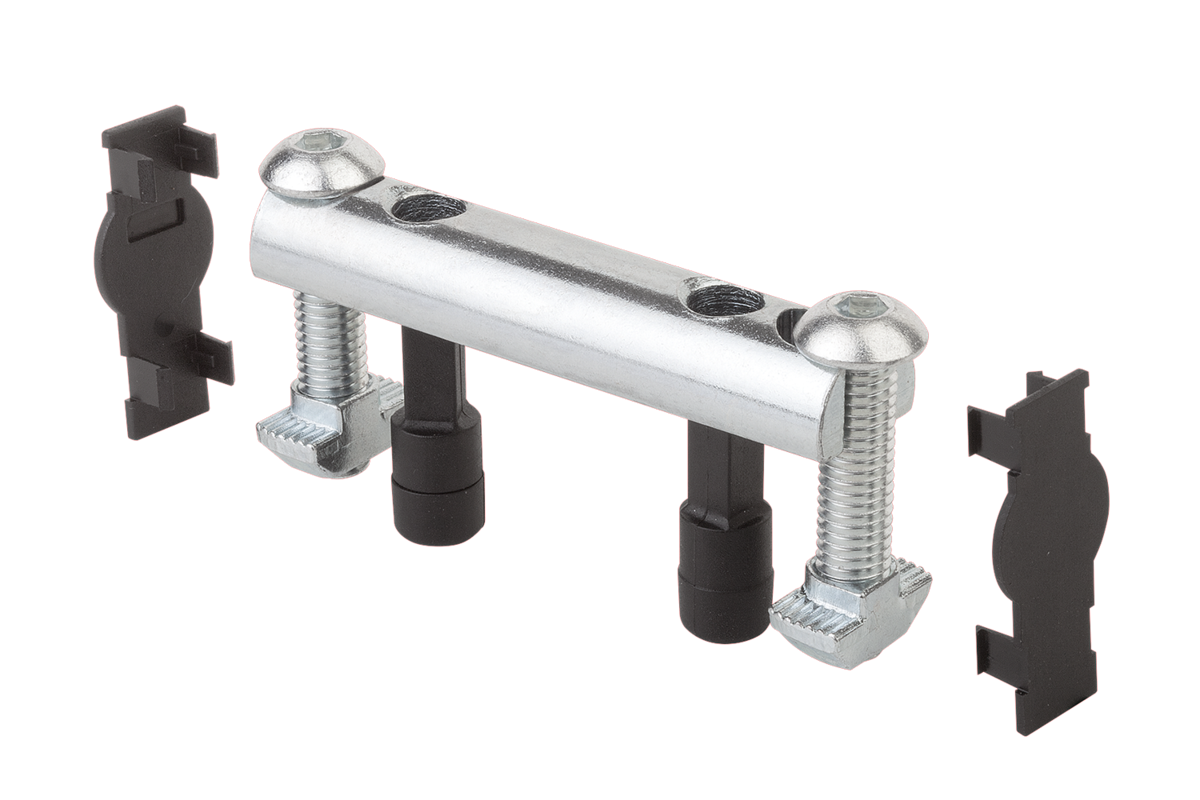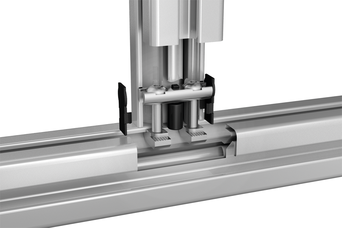 Los juegos de unión resultan adecuados para unir dos perfiles de aluminio en ángulo recto. Los juegos de unión permiten un posicionamiento libre de los perfiles. Adecuado para cargas superiores y la absorción de fuerzas de torsión.
