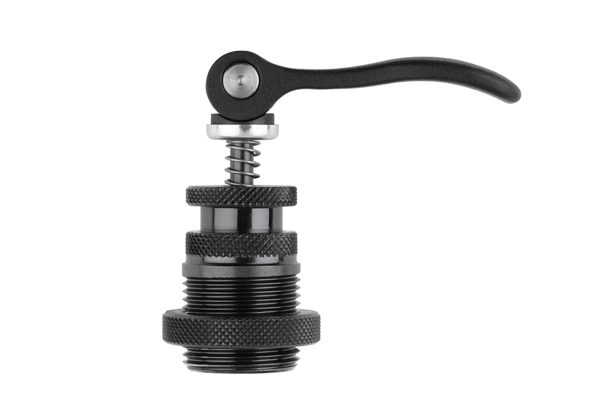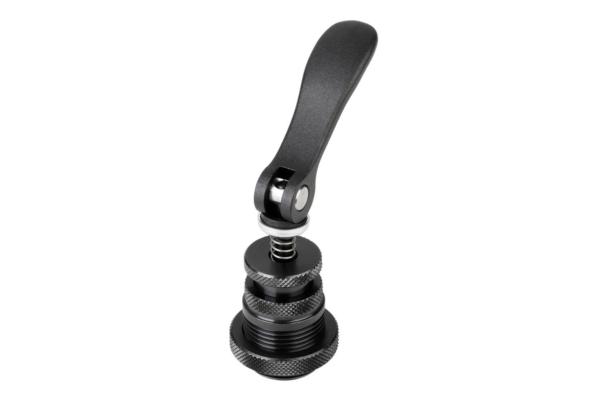 Cuerpo base bruñido. Tuerca de martillo cincado. Palanca excéntrica con recubrimiento de polvo negro.