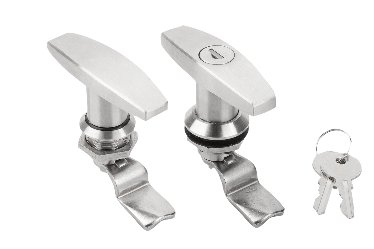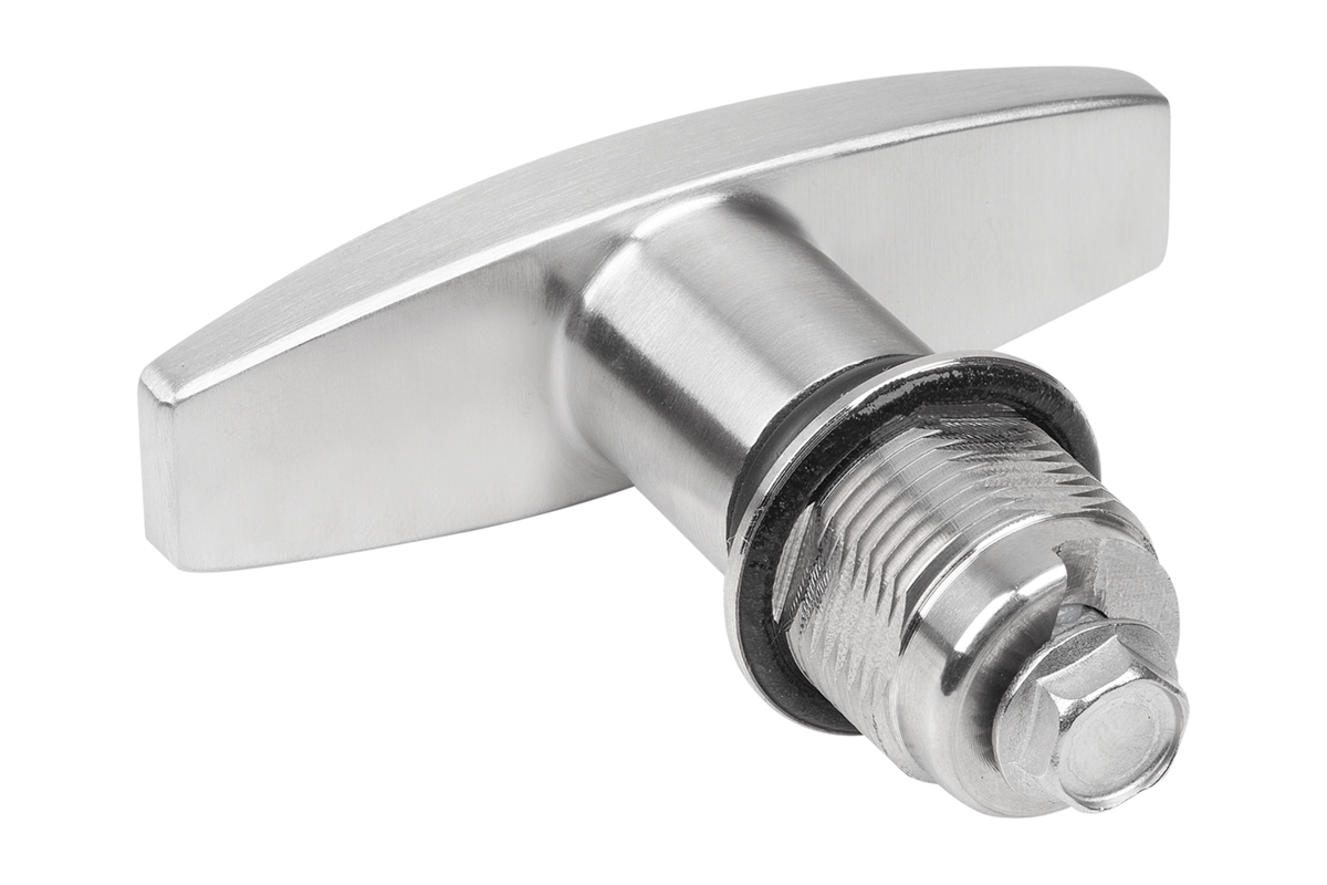 Cierre de cuarto de vuelta con empuñadura en T. Utilizable a la derecha o la izquierda con una carrera de cierre de 90°. El cierre de cuarto de vuelta se puede instalar previamente montado. Suministro con tuerca estándar de acero inoxidable. El cuarto de vuelta bloqueable se suministra con 2 llaves. La llave se puede extraer en ambas posiciones (abierta y cerrada). El cierre es uniforme, es decir, cada cerrojo se abre con la misma llave (cierre 1333).