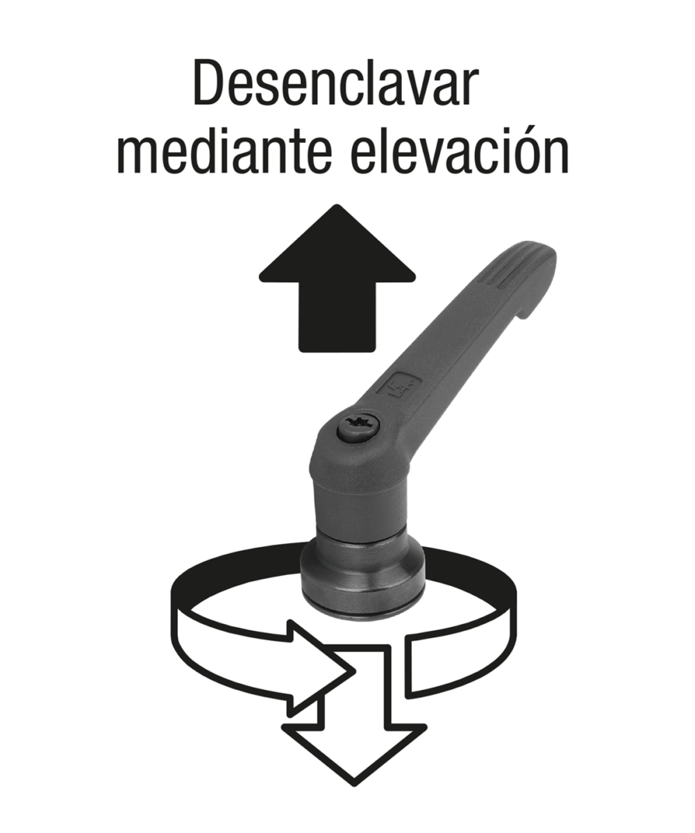 Este producto se presta, también, para su empleo por parte de personas con una fuerza restringida en la mano (p. ej. en el área de la rehabilitación), con el fin de obtener poderes de sujeción comparables ejerciendo una fuerza menor. Para soltar la palanca de sujeción apretada se requiere también menos fuerza de la mano.