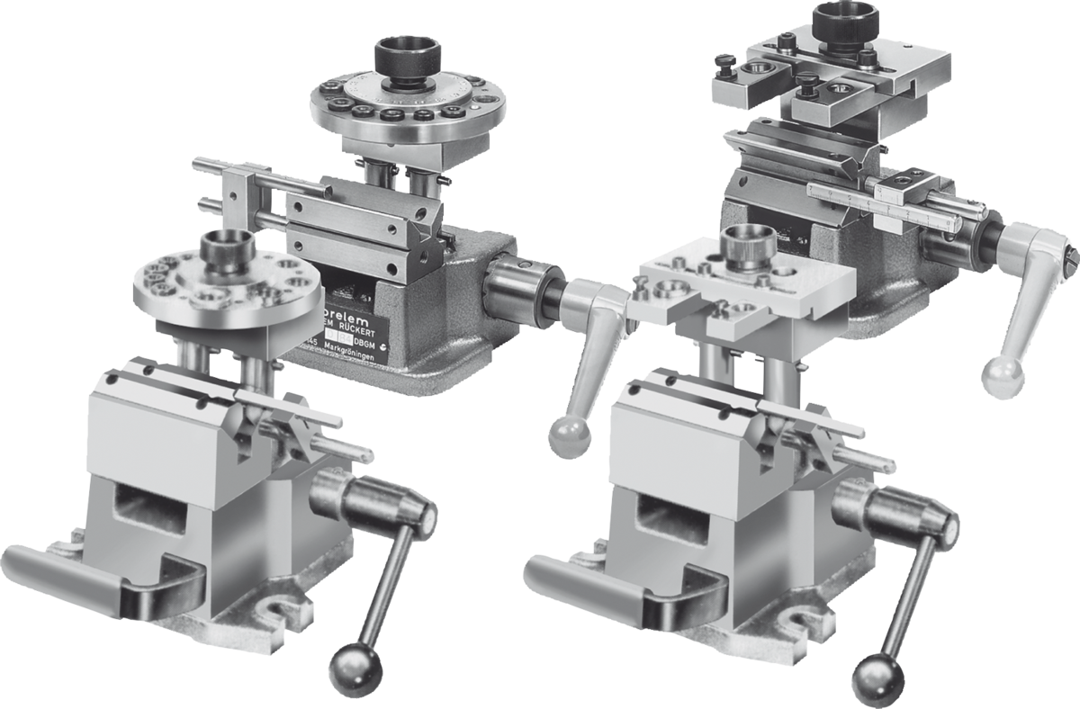 Los dispositivos de sujeción de taladrar para piezas cilíndricas son especialmente útiles para realizar perforaciones transversales en piezas giratorias. Como elemento básico, se utiliza el dispositivo de sujeción de taladrar DIN 6348 de los tamaños 0 y 2.
