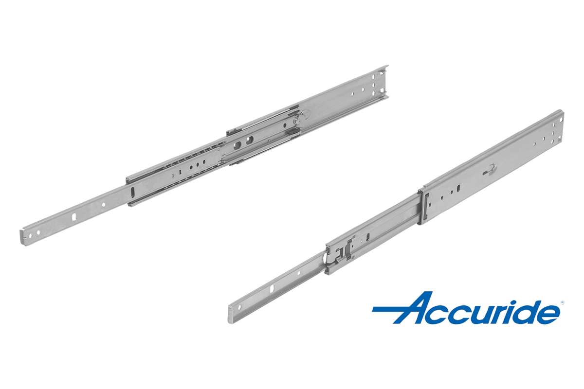 En los carriles telescópicos con sobre extensión, la carrera es mayor que la longitud de montaje. Enclavamiento en posición abierta. Accionando la palanca de desbloqueo se puede extraer fácilmente el cajón y retirarlo de la guía.