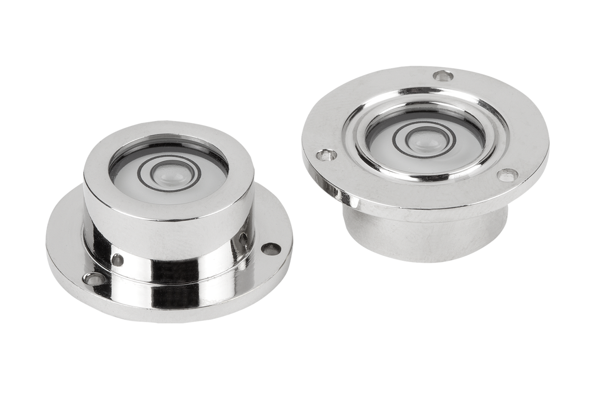 Niveles de burbuja circulares con casquillo para atornillar, forma A con brida atornillada