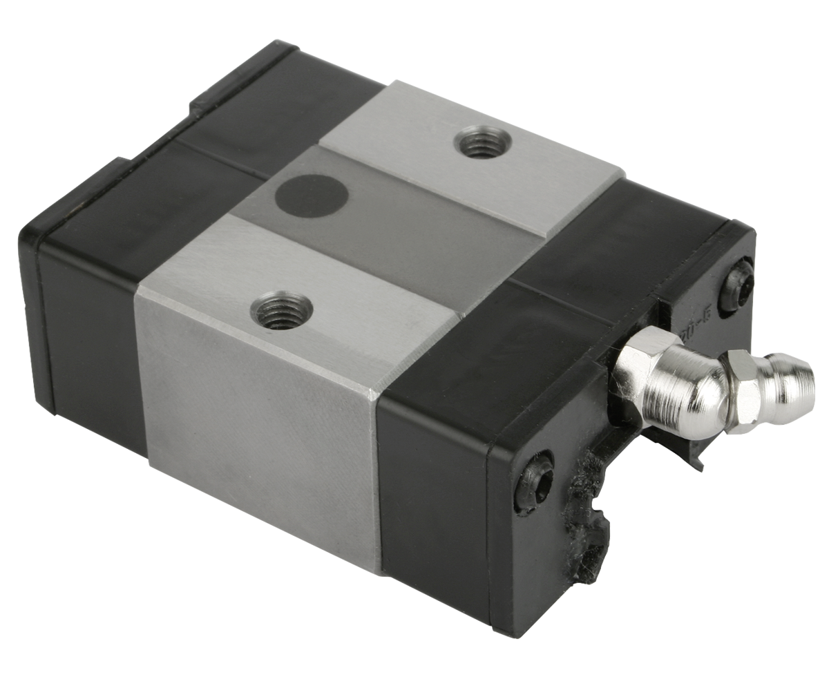 Carro guia compacto, curto, com guia de esferas recirculantes, conforme precisão N, sem pré-carga (Z0). Com vedação de fechamento bilateral. Versão em 4 fileiras com perfil em arco. As vias dos trilhos perfilados são instaladas em um ângulo de 45°, podendo suportar cargas de todas as direções.