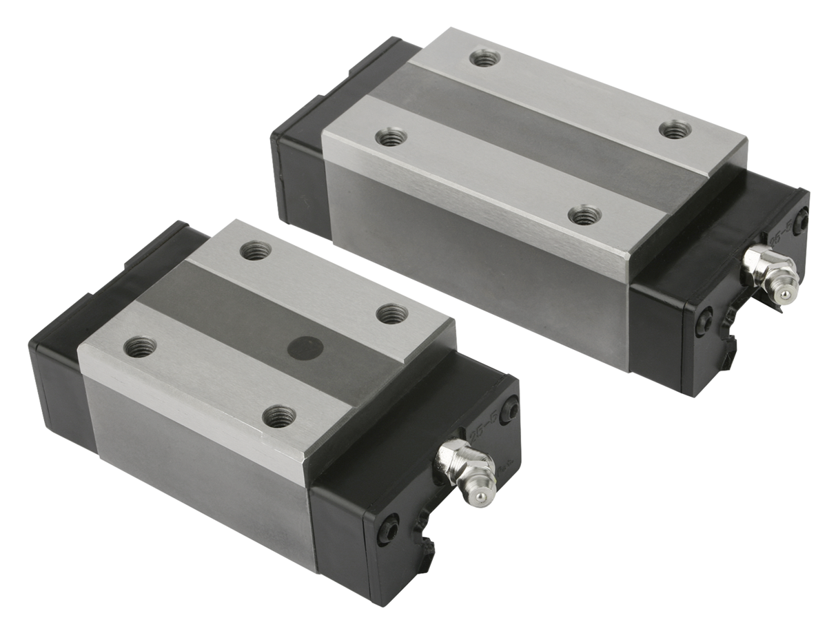 Carro guia padrão com guia de esferas recirculantes, conforme precisão N, sem pré-carga (Z0). Com vedação de fechamento bilateral. Versão em 4 fileiras com perfil em arco. As vias dos trilhos perfilados são
