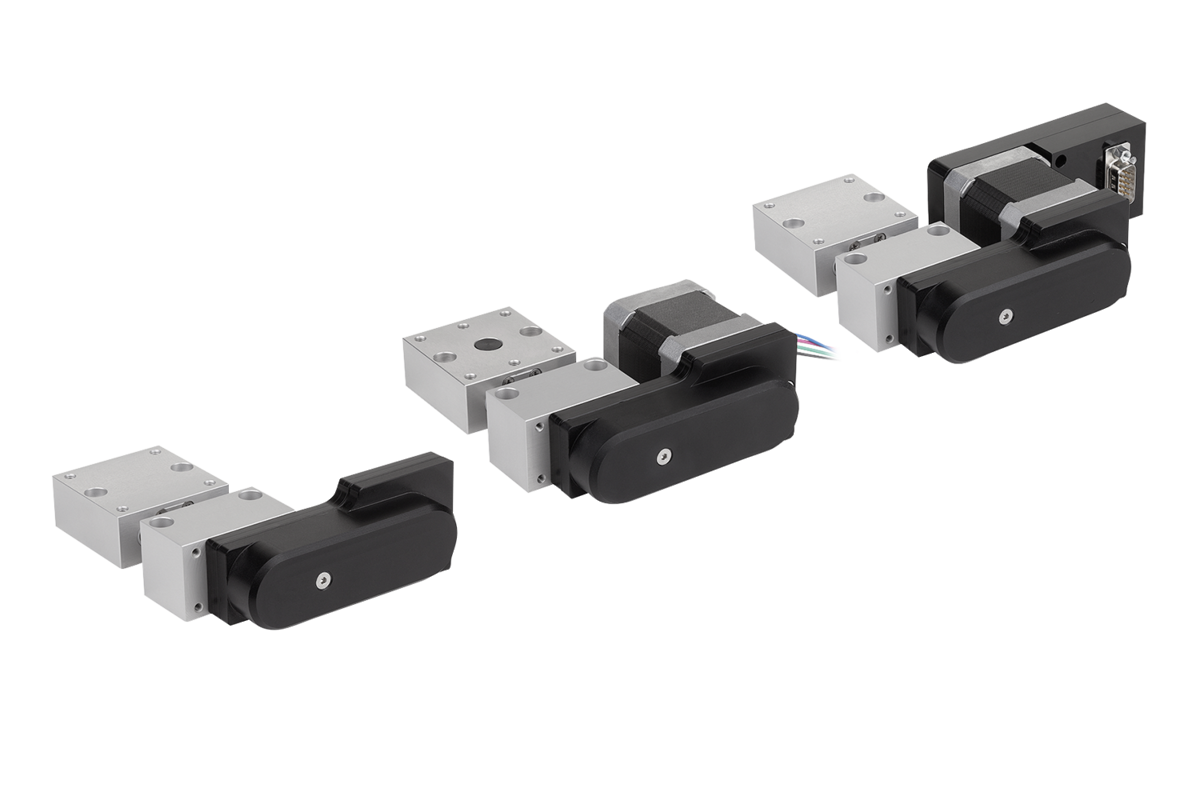 Mesas de posicionamento para tarefas motrizes de deslocamento e posicionamento. As buchas deslizantes e as porcas do fuso são adequadas para o funcionamento a seco, contudo recomenda-se a lubrificação com graxa adequada para mancais de deslizamento em plástico.