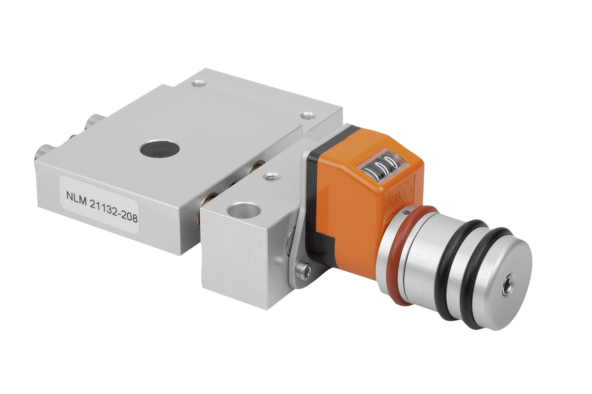 Indicador de posição digital com 0,1 mm de precisão de indicação e números crescentes com rotação para a direita. O valor de indicação do indicador de posição pode ser ajustado sem o uso de ferramentas. Para isso, basta girar o anel de arraste. A posição de montagem do indicador de posição pode ser fixada por meio de um parafuso em 4 posições.