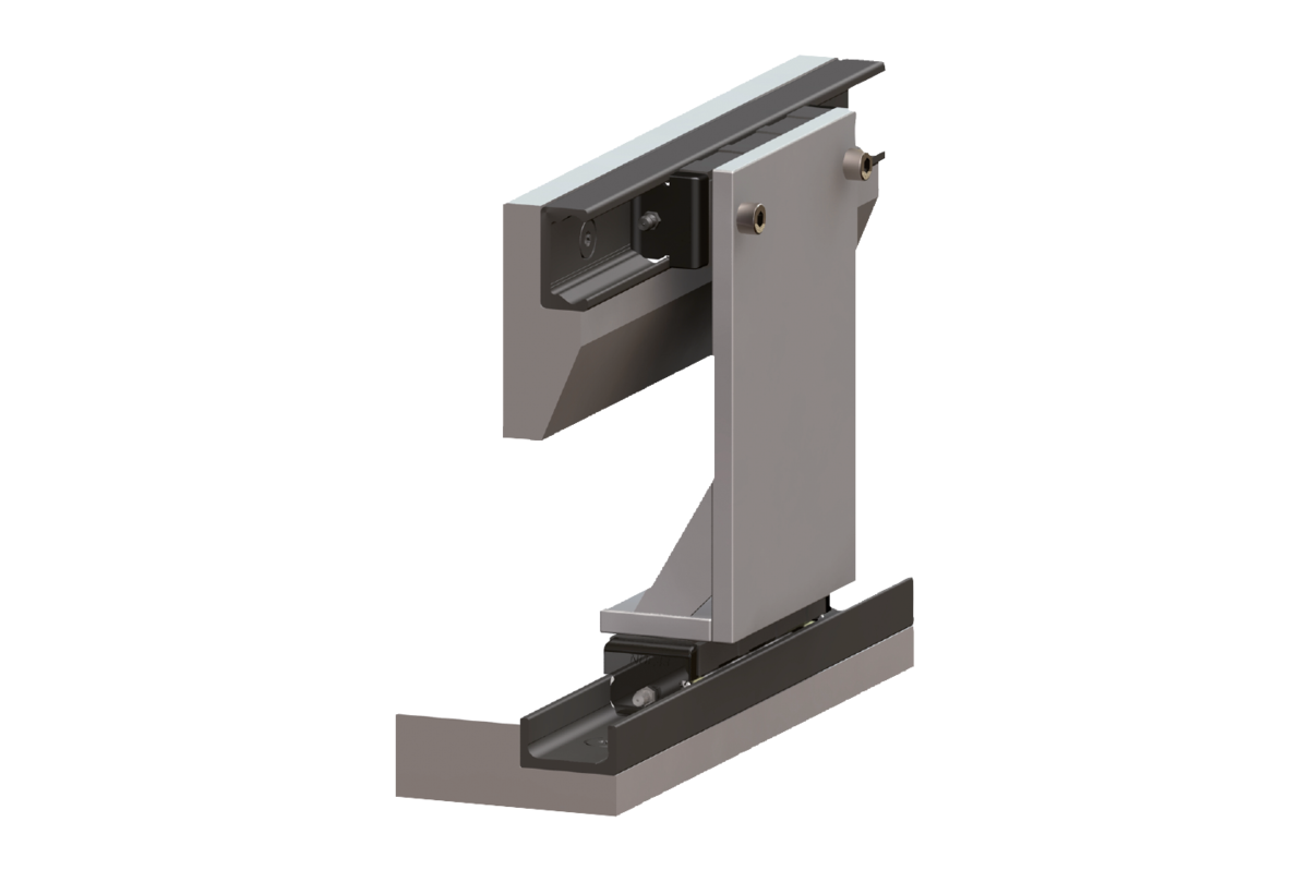 Visto que o parafuso apresenta uma folga no furo, o trilho pode ser alinhado na montagem.