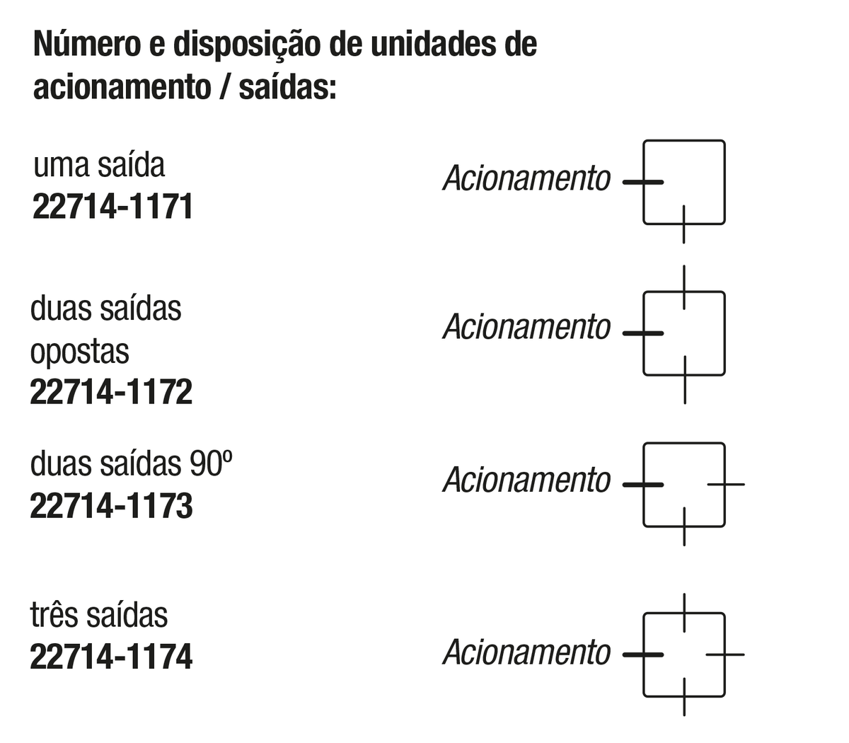 O acionamento e a saída ocorrem através de um sextavado interno.