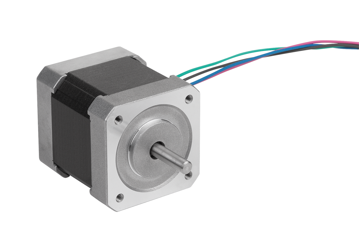 Motor de passo High-Torque bifásico nas dimensões NEMA 17, NEMA 23 e NEMA 34 com eixo achatado (eixo D). Ângulo de passo de 1,8° (passo completo) com cabo de conexão de 4 fios.