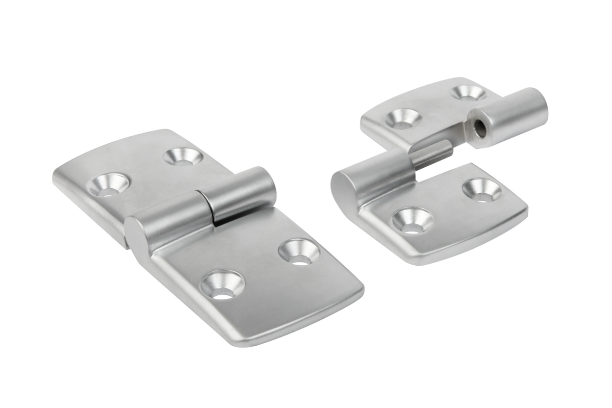Dobradiças para elementos planos, painéis e perfis de alumínio.