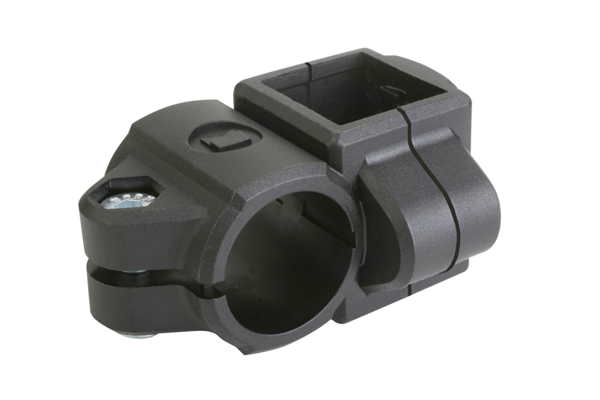A abraçadeira dupla cruzada fixa possibilita a união de tubos quadrados e redondos de 30 mm. Na fixação de tubos menores ou na mudança de tubos redondos para quadrados, a adaptação pode ser feita através das buchas redutoras 29040 e 29042.