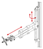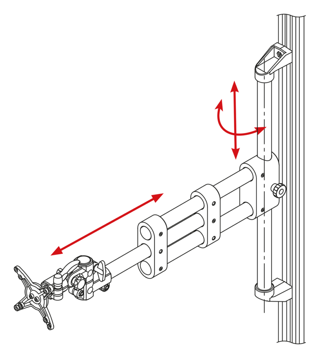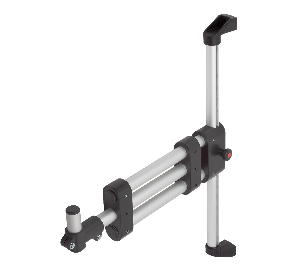 permite um raio de oscilação de 60°. Adequado para cargas até 10 kg (estática). Com placa de aparafusamento universal. O suporte básico é indicado para fixação em tubos redondos de Ø30 mm. Através das buchas redutoras (artigo opcional 29042), é possível conectar ao sistema outros tipos de tubos (redondos Ø20 e 25 mm ou quadrados 20x20 mm).