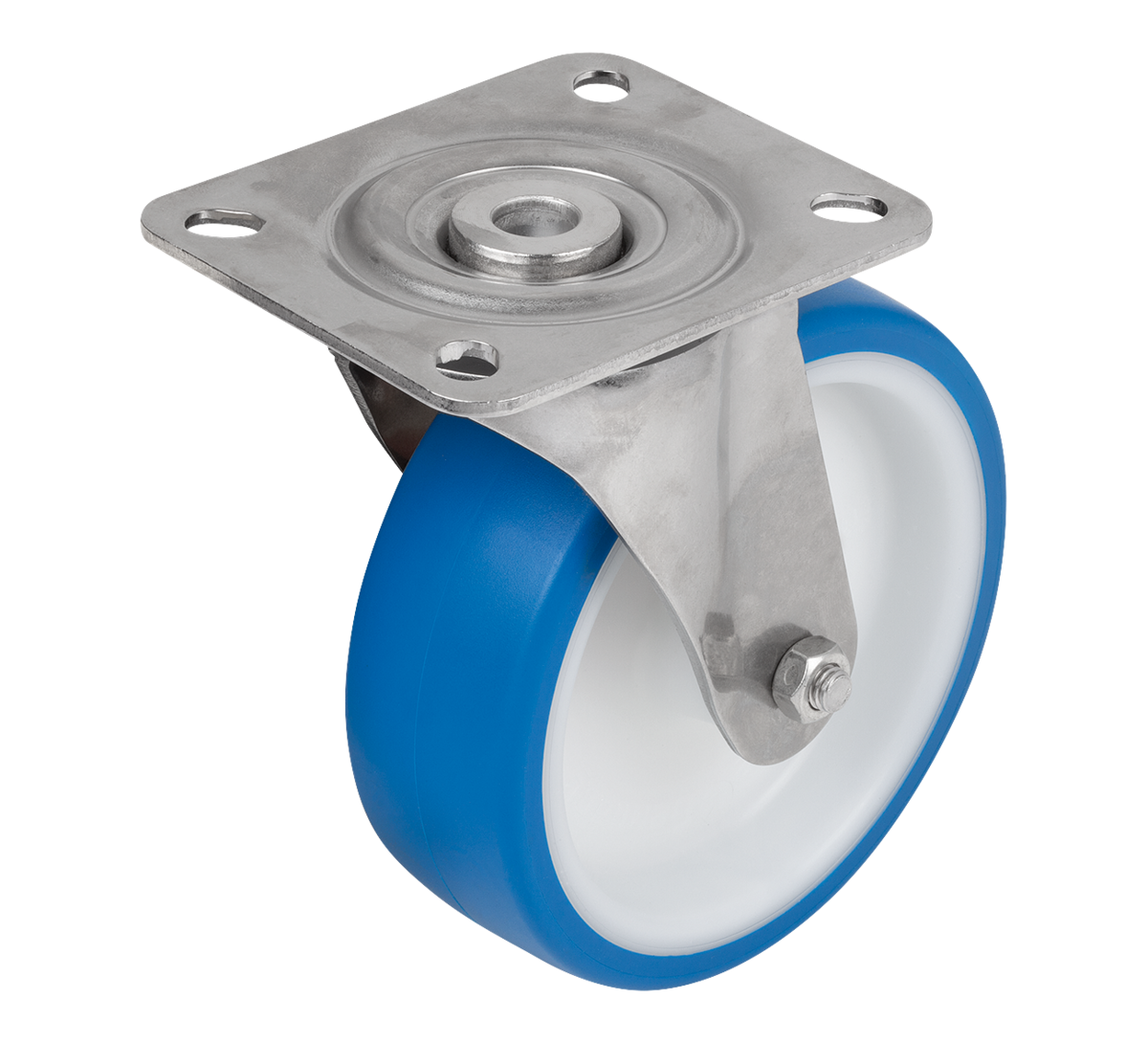 Eixo da roda aparafusado. Rodízios industriais giratórios e fixos com placa de aparafusamento.
