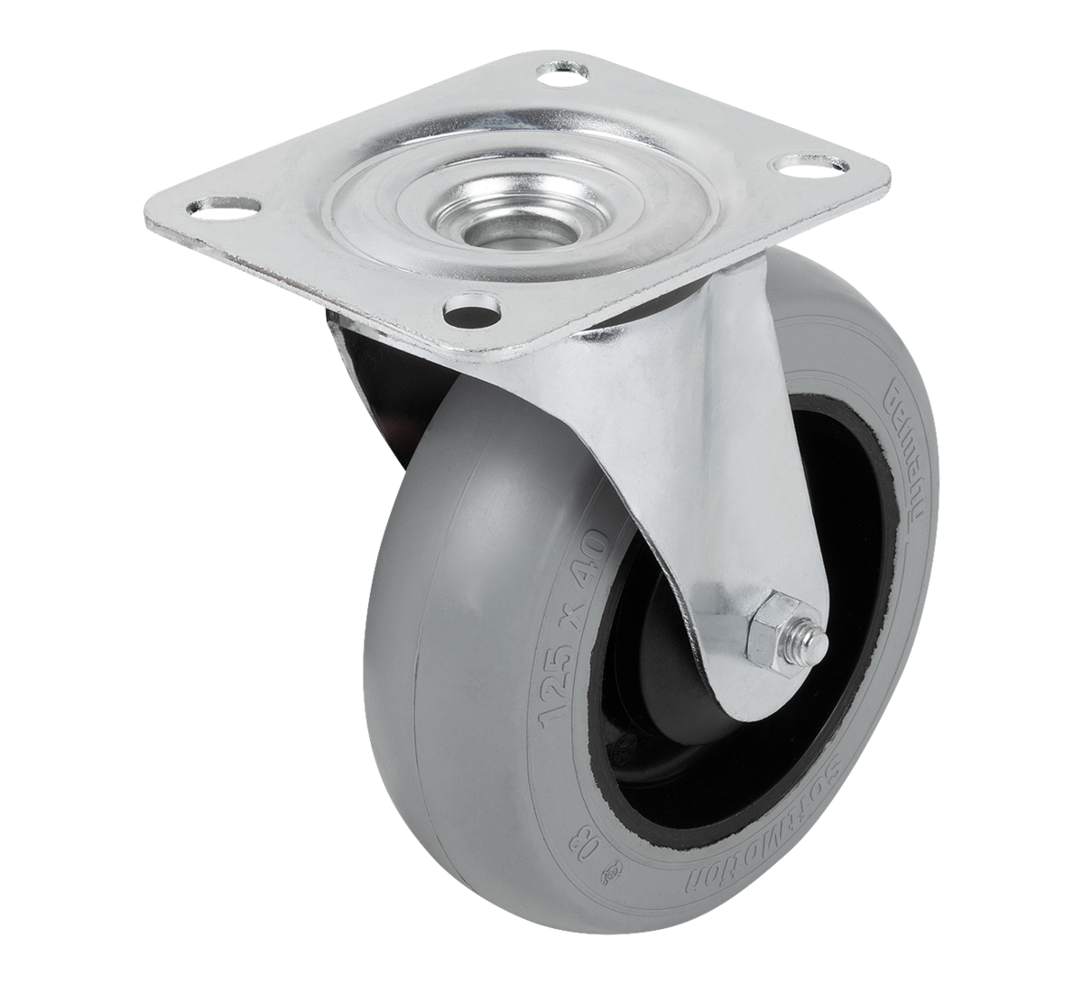 Corpo da roda em poliamida resistente à ruptura, de alta qualidade (Ø da roda de 100 e 125 mm) ou alumínio fundido sob pressão (Ø da roda a partir de 150 mm).