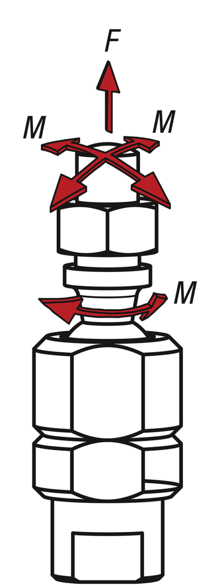 A mobilidade da esfera pode ser influenciada ou completamente travada, através da porca de fixação.
